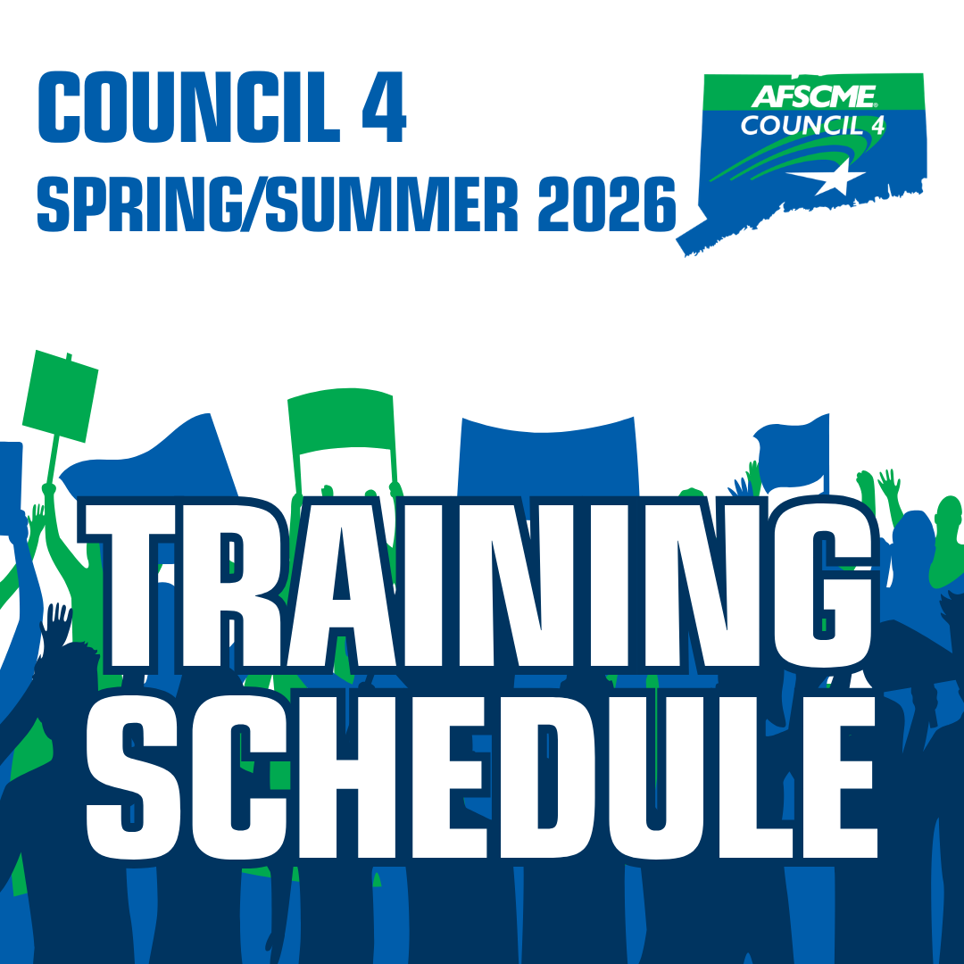 Council 4 provides free training and education opportunities covering areas such as collective bargaining rights, stewards training, leadership roles and responsibilities, grievance and arbitration handling, communications and politics, and much, much more.